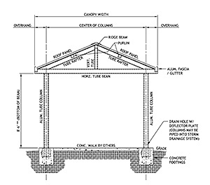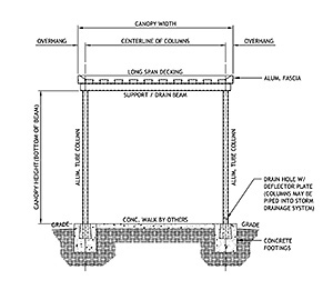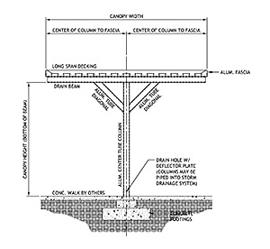 Typical 2 Post Short Span Canopy System pdf (216kb) dwg (132kb) |